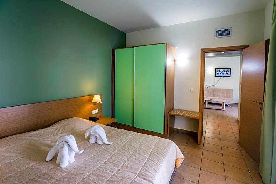 Large apartment with dining area. Located on the semi-basement floor of the hotel. This unit can accommodate up to 2 baby cots.